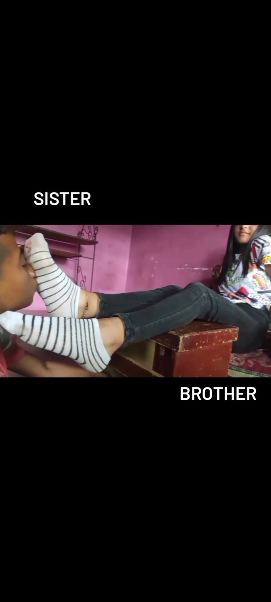 He sniff her older sister socks