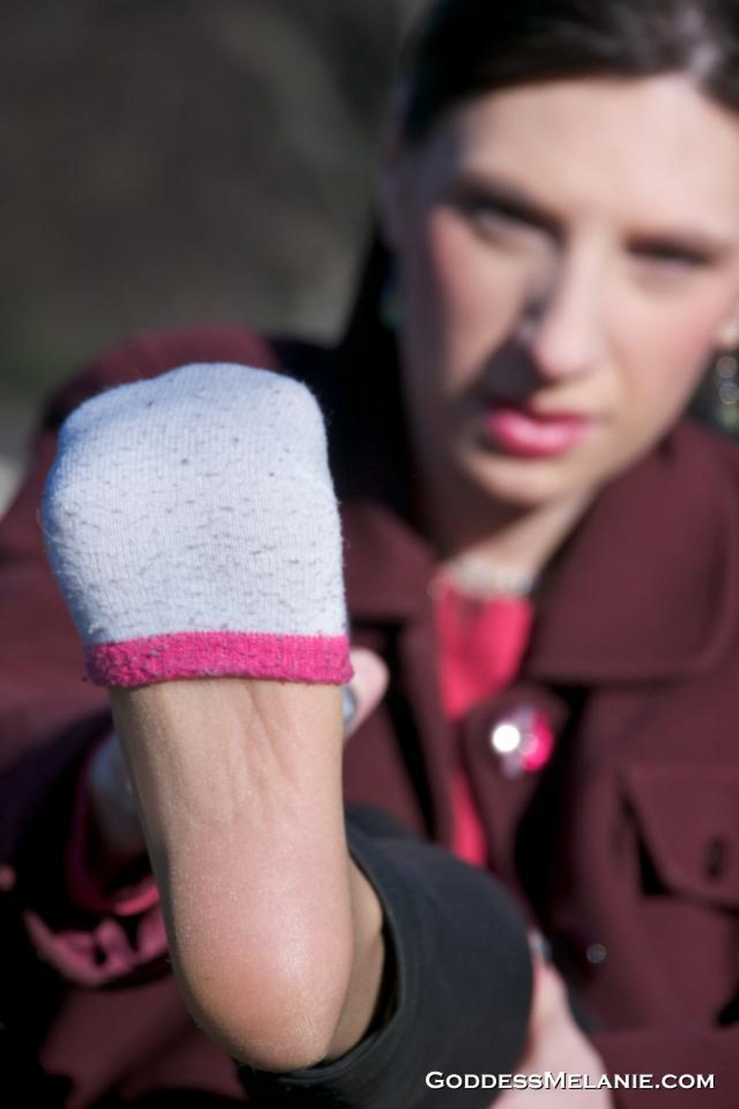 Goddess Melanie sweaty nylon feet