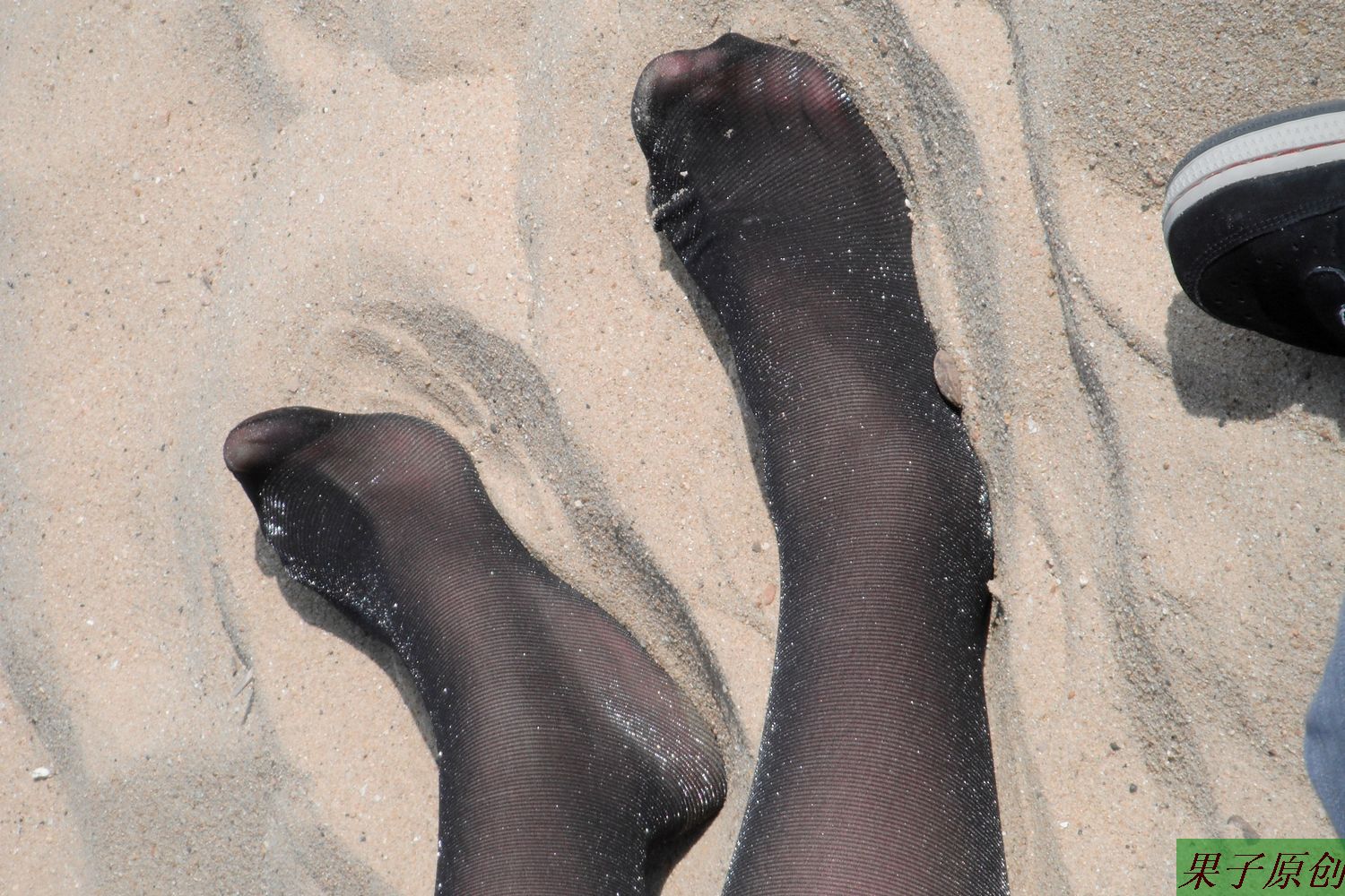 small feet soles in fishnets bare blonde woman