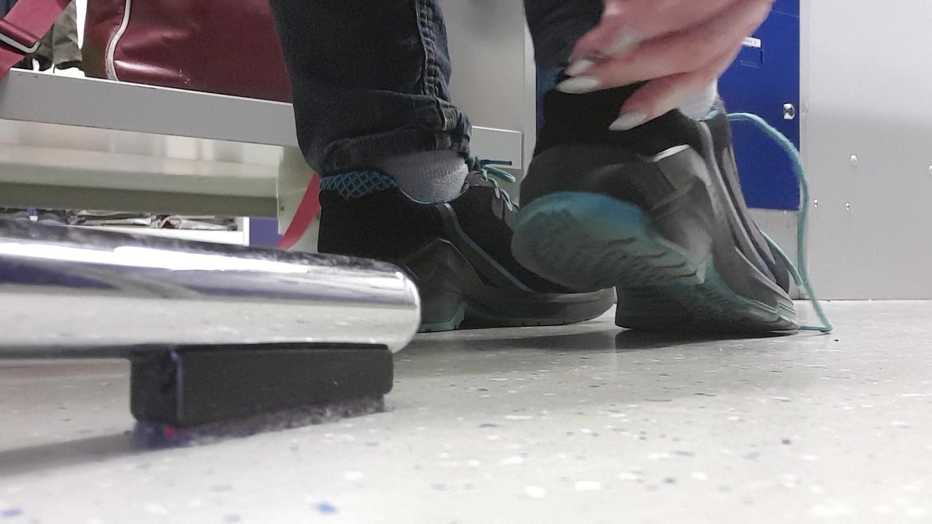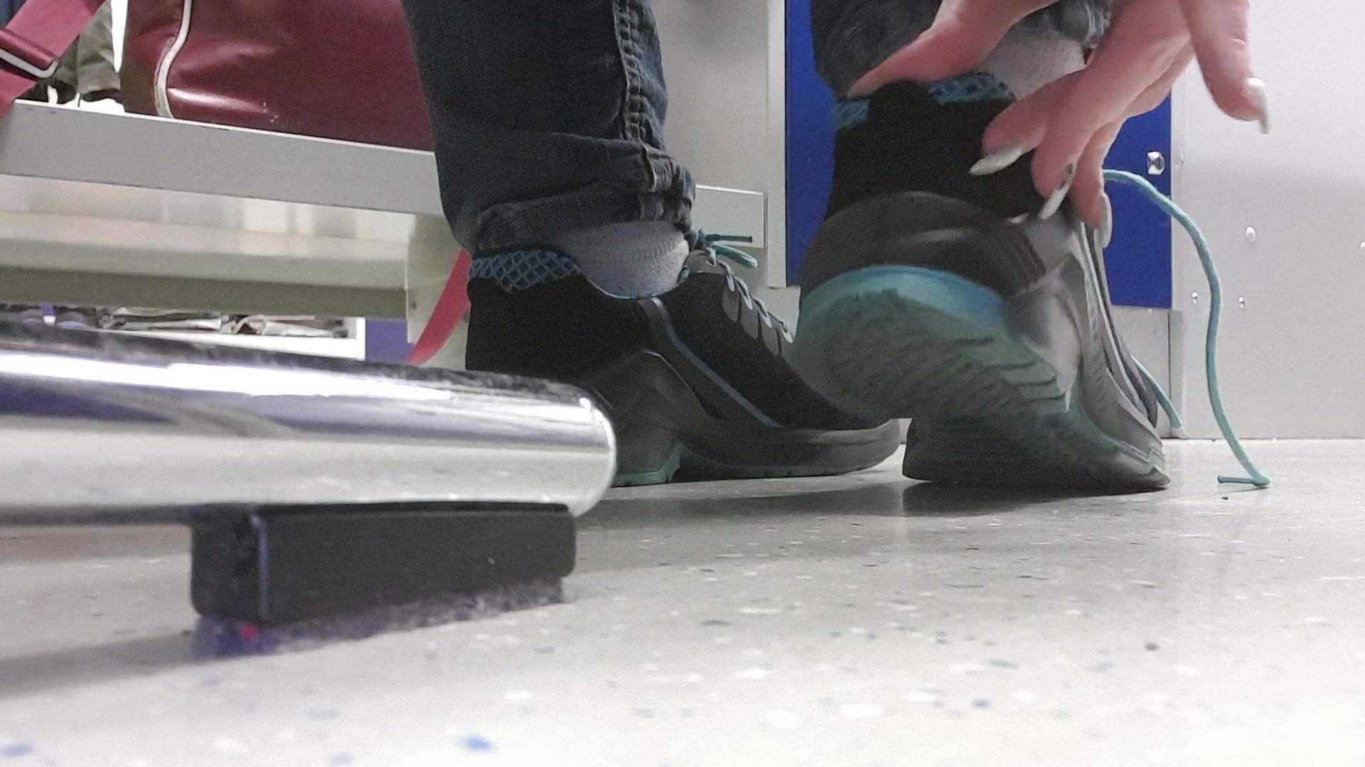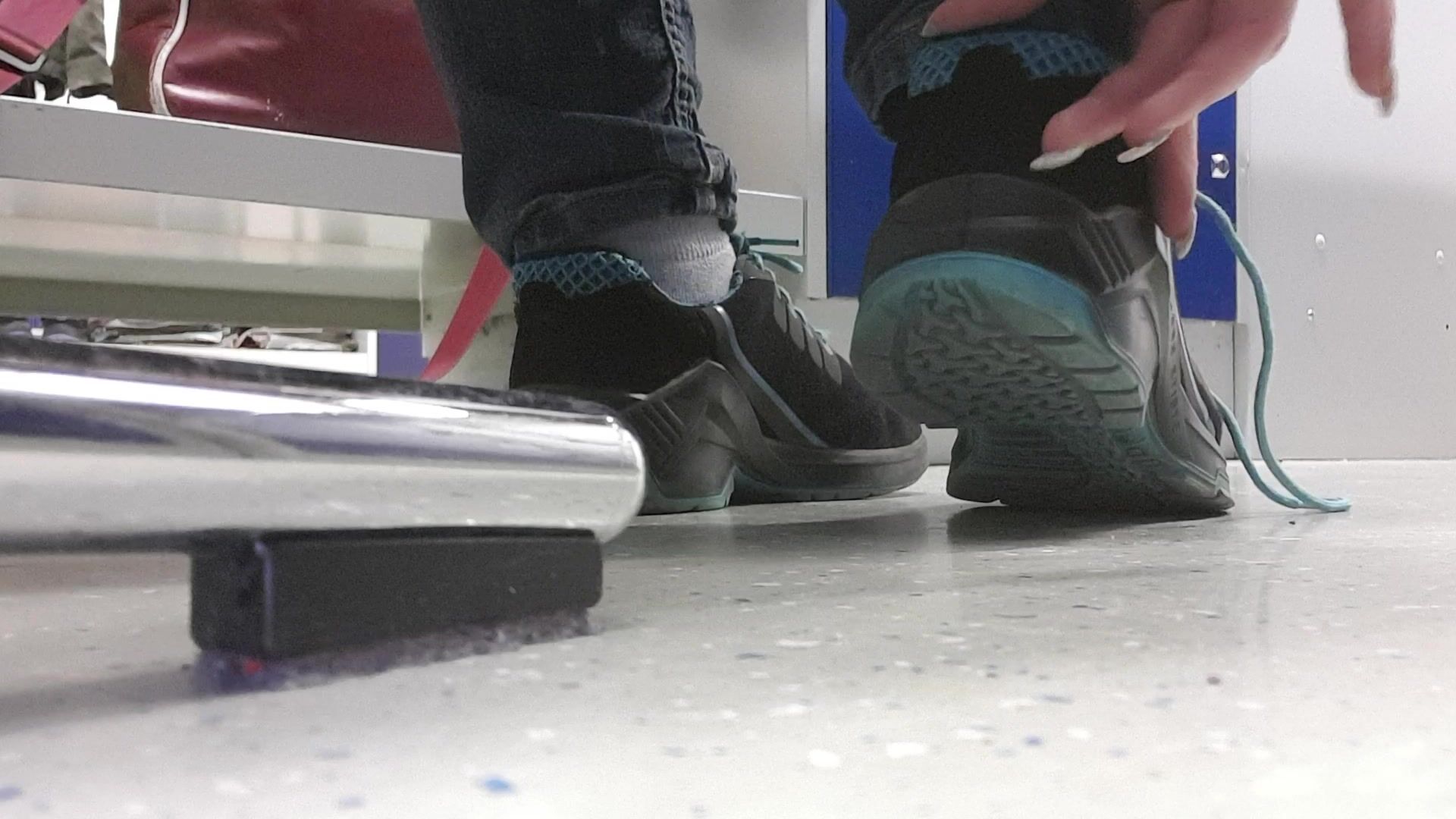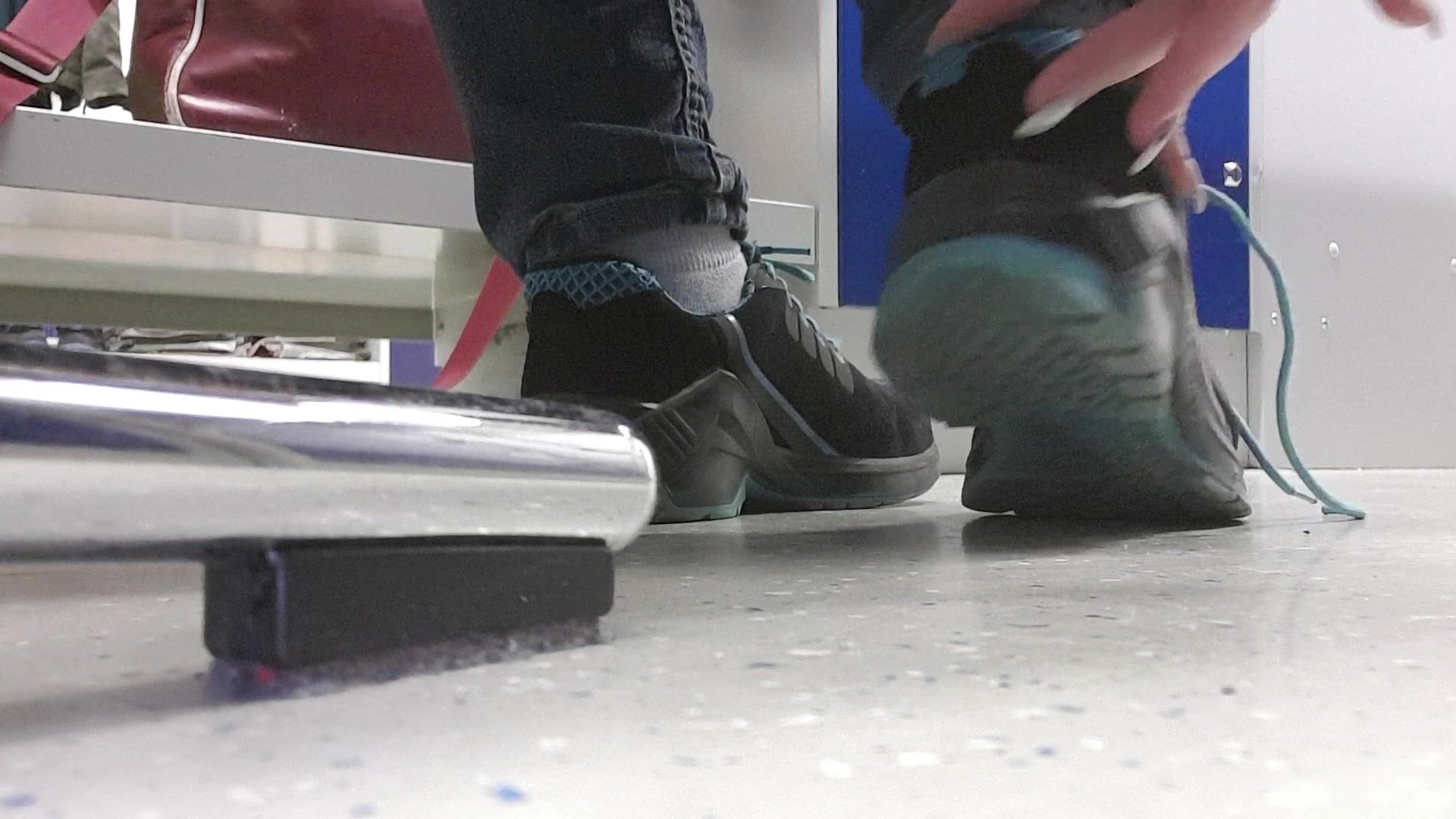 Lisa work at a factory so she have to wear this comfortable work shoes which make her feet and especially her socks very sweaty and stinky