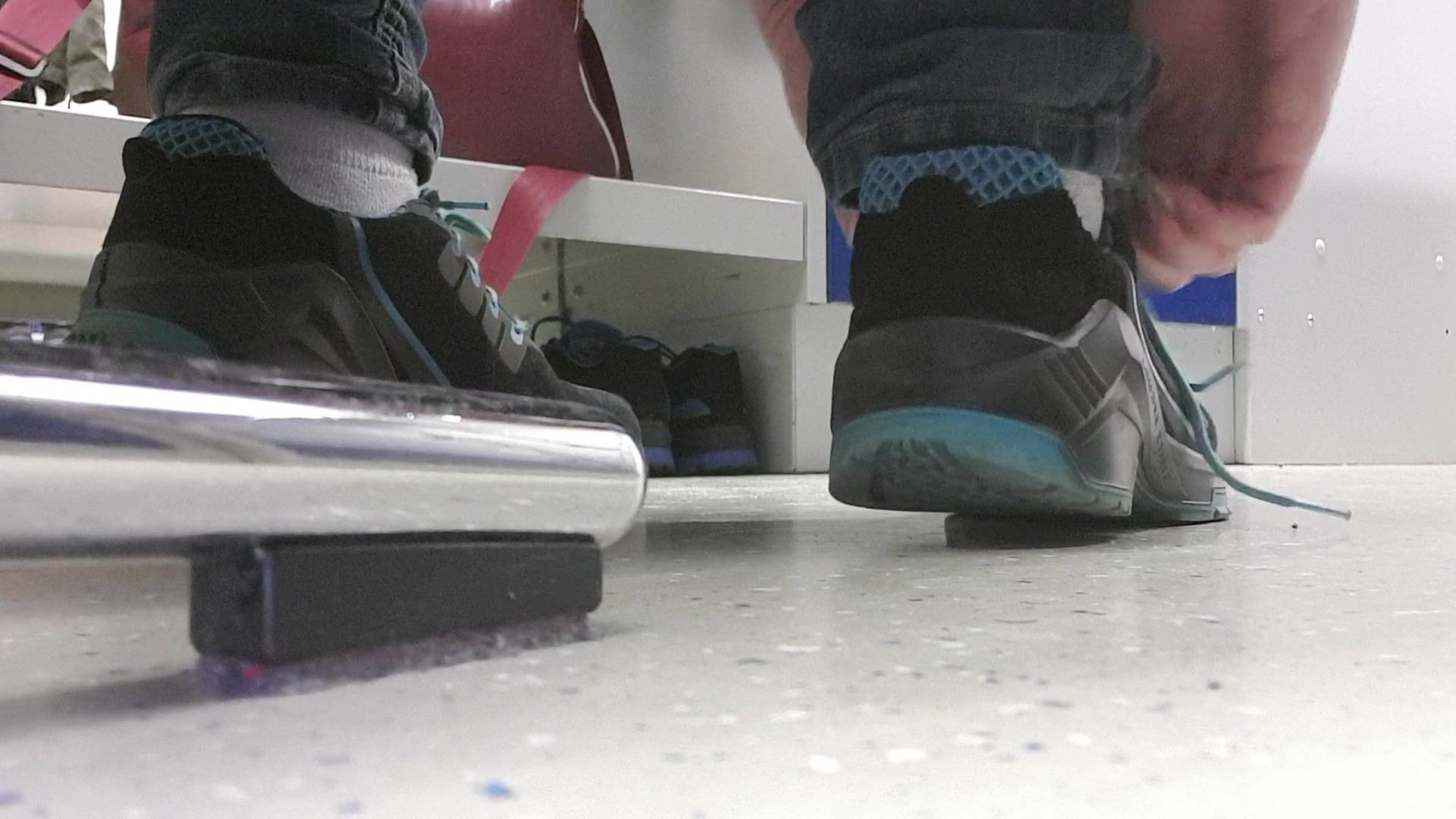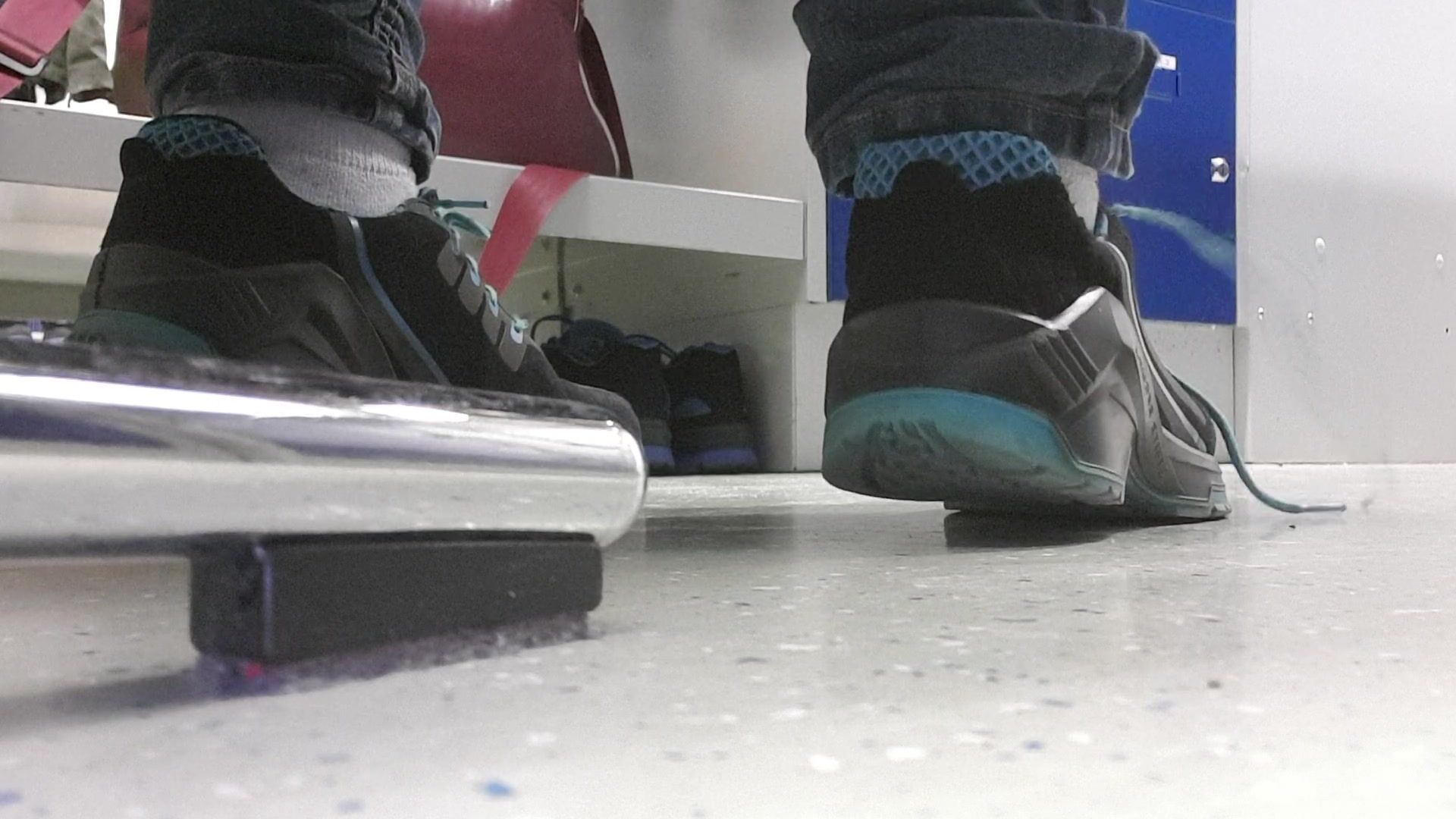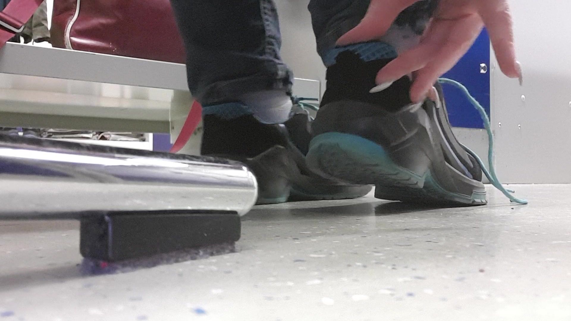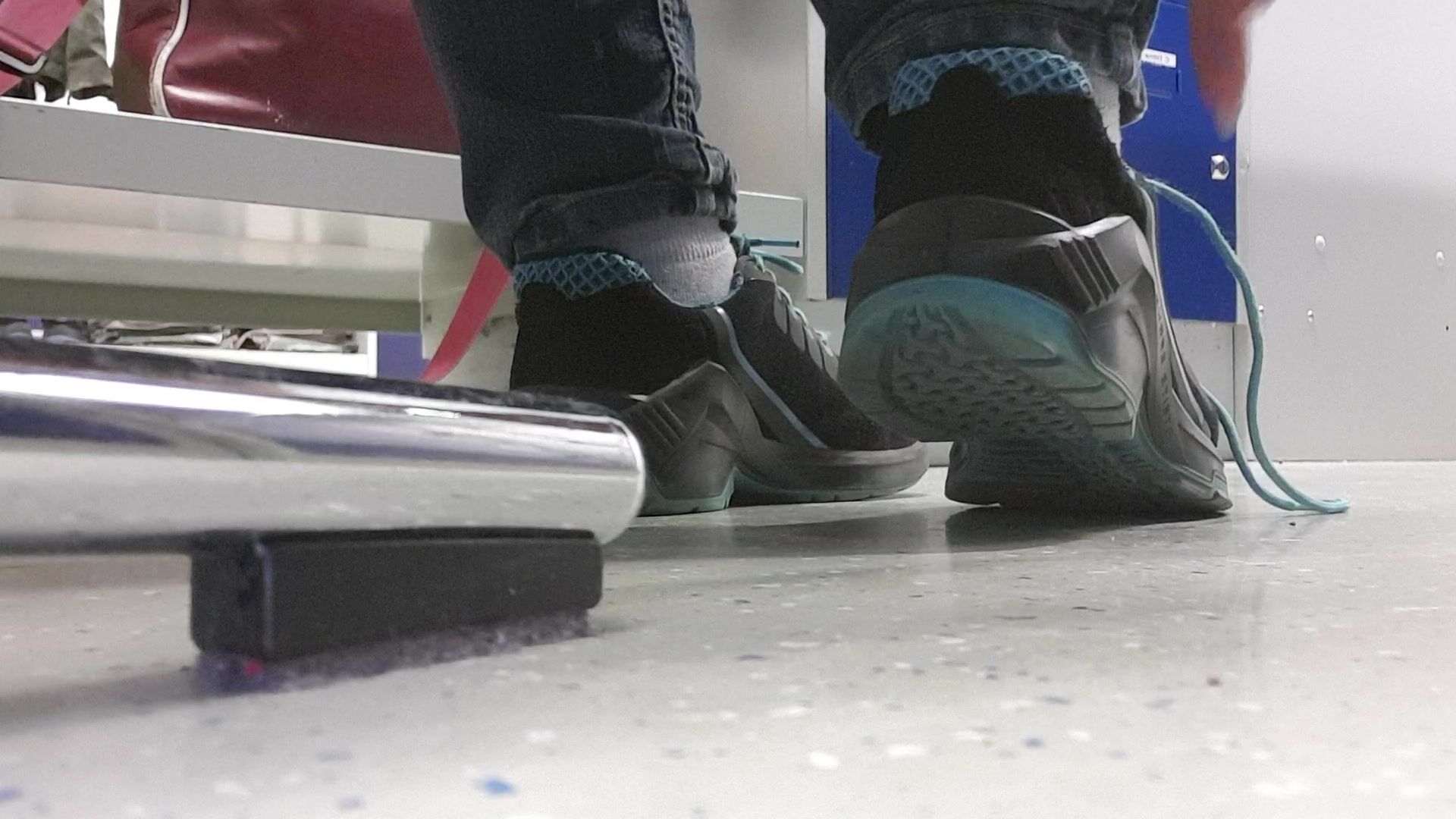 Lisa work at a factory so she have to wear this comfortable work shoes which make her feet and especially her socks very sweaty and stinky