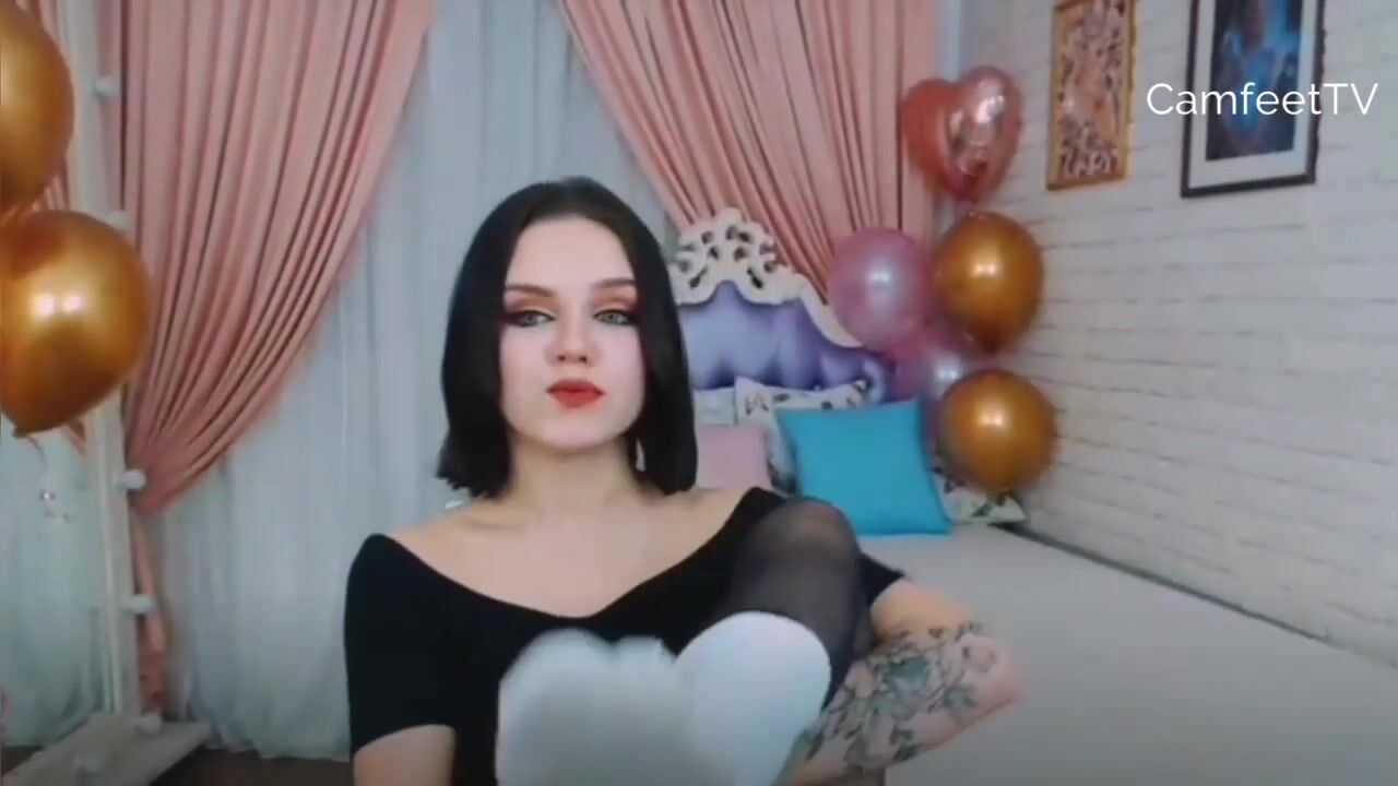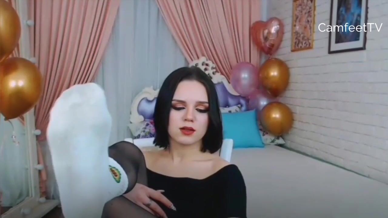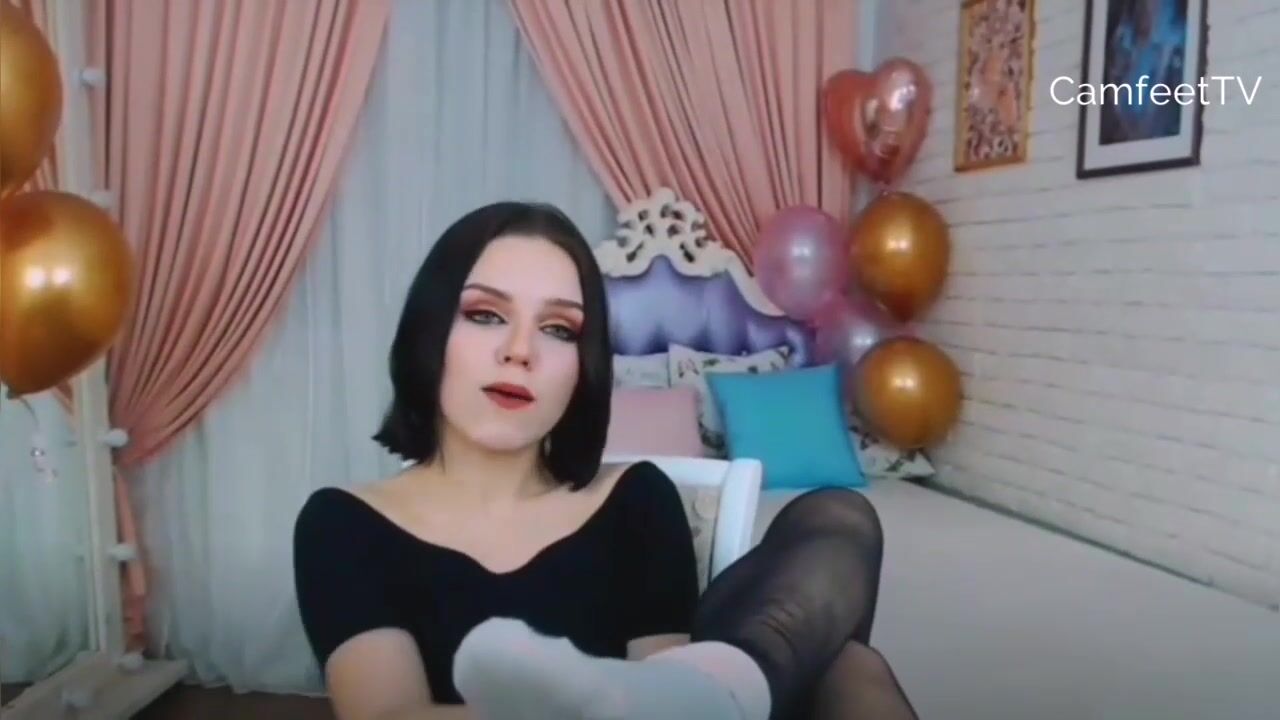 dark hair teen show feet in socks pantyhose barefoot