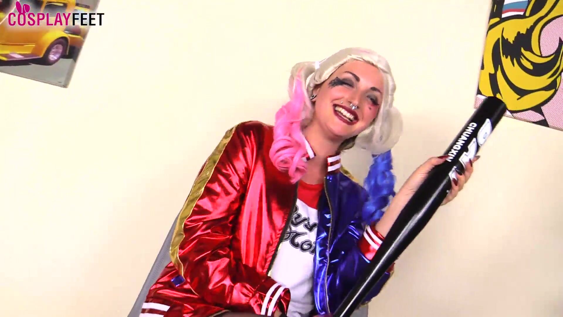 Cosplayfeet - Medusa Blonde Looks Insanely Hot In Harley Quinn Cosplay Costume With Black Nylons