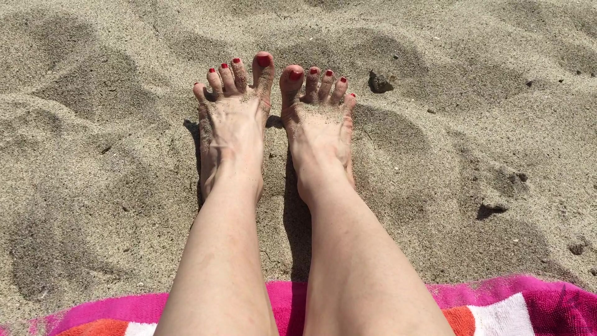 Hipset Feet - Wiggling her toes with red toenail