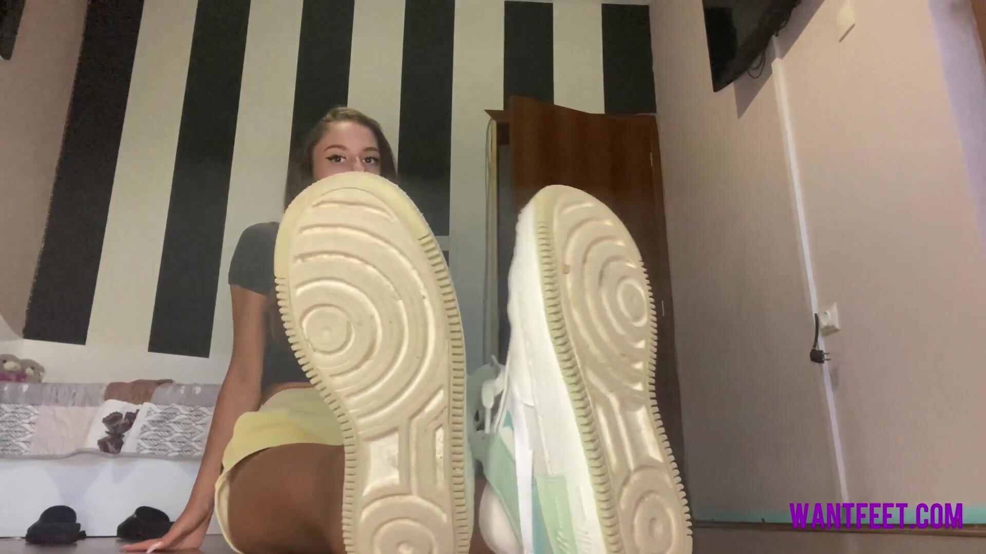 Sexy teen tease with soft soles feet joi