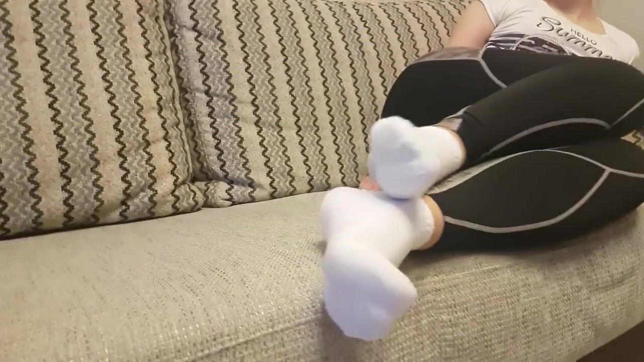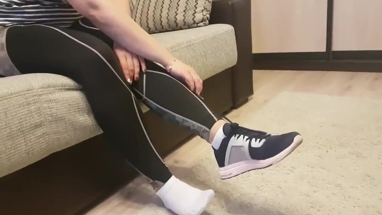 After GYM Sweaty Feet In White Ankle Sock And Tan Nylon