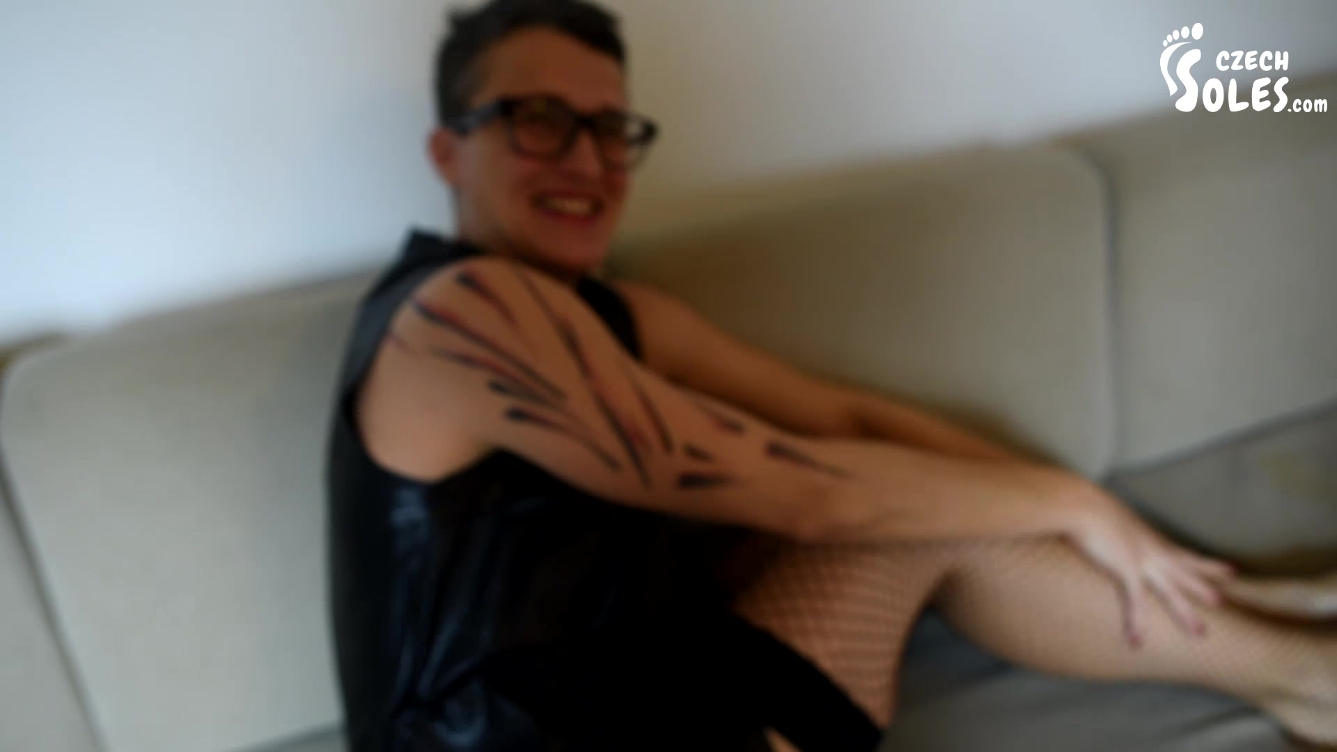 Czech Soles - Worshiping mature bare feet in fishnet stockings
