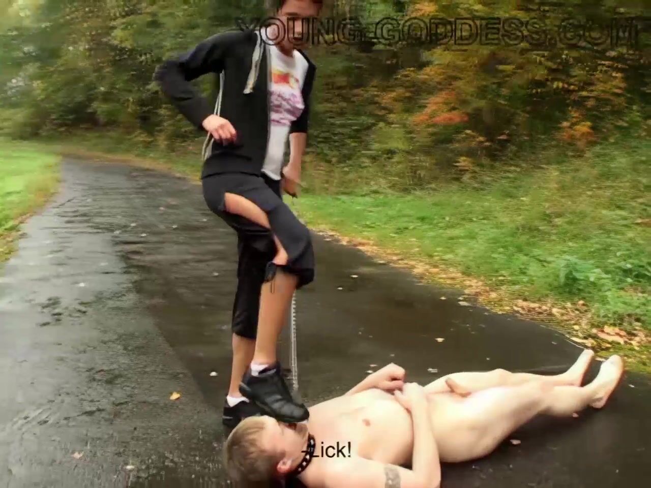 public femdom, russian mistress Nastia walking a slave