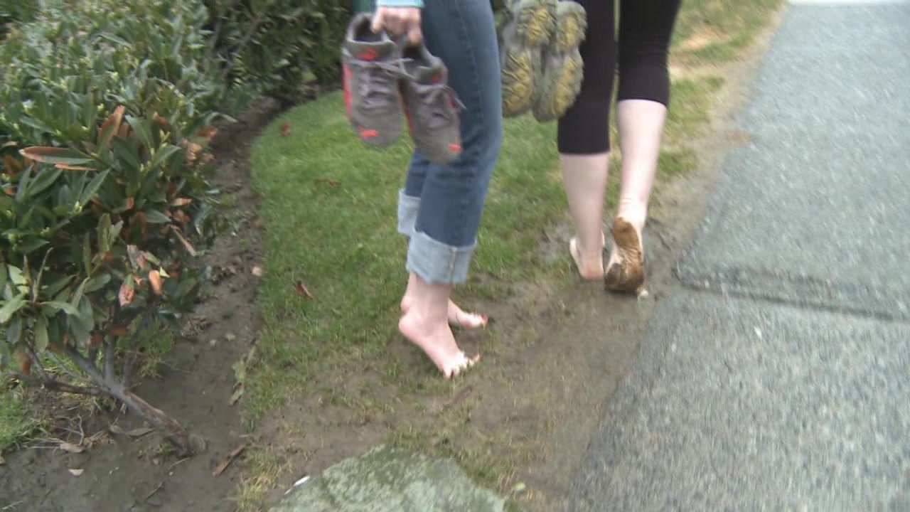 Megan Jones muddy foot cleaning