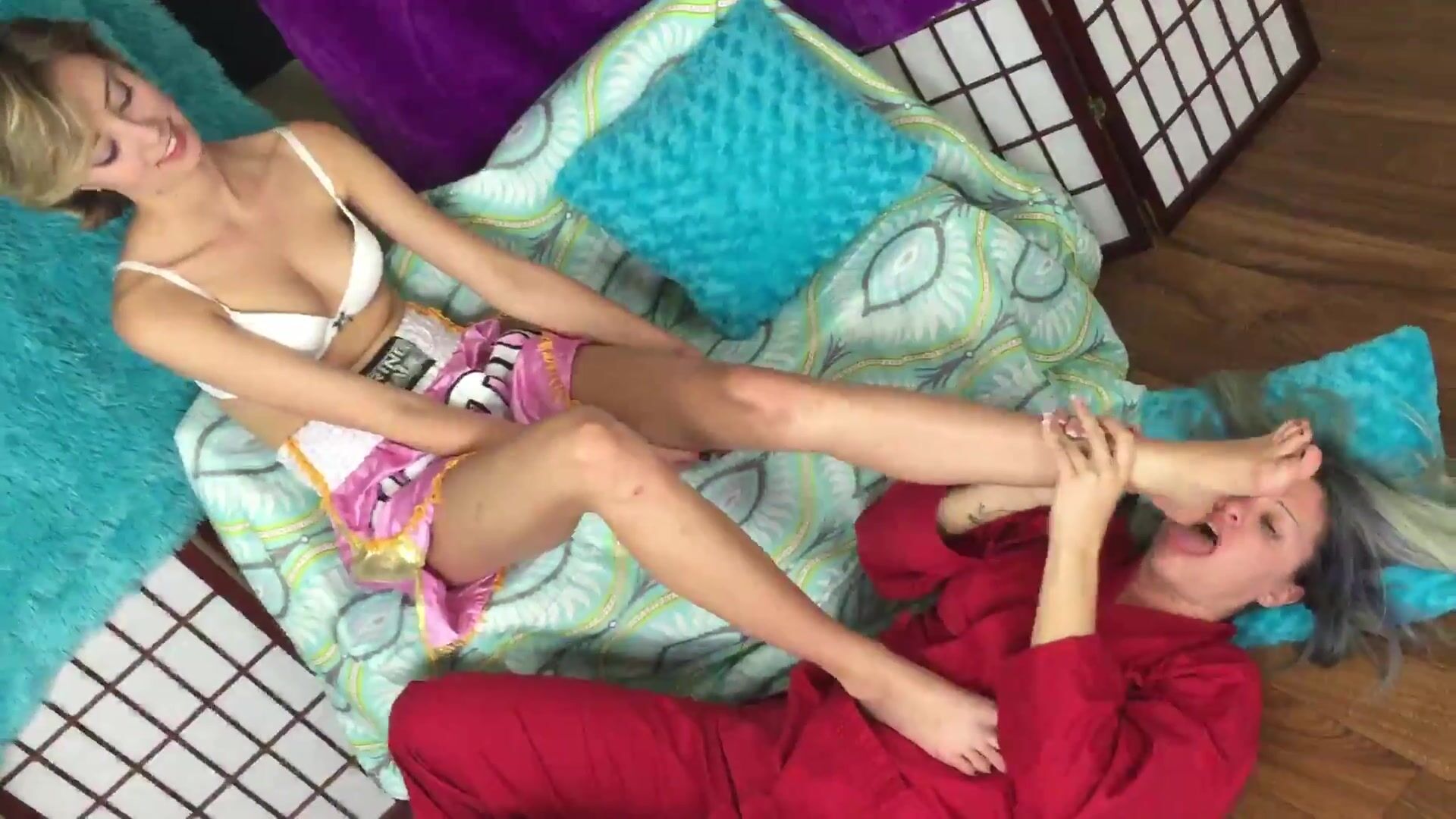 Garota lambe os pés da amiga