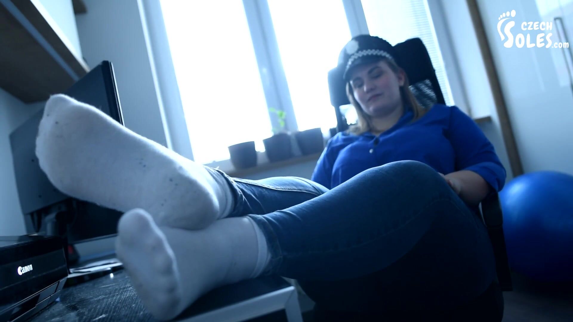 Czech Soles - Lazy BBW Police Woman's Smelly Socks And Feet (Big Feet, Socks, Bare Feet, Worn Socks, Police Feet)