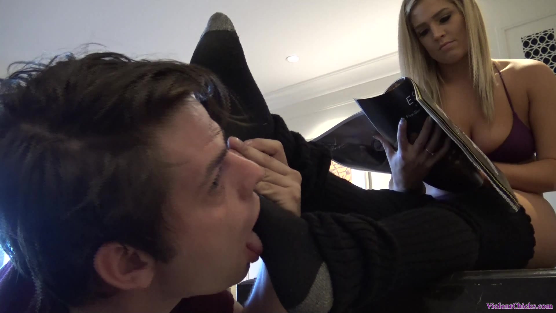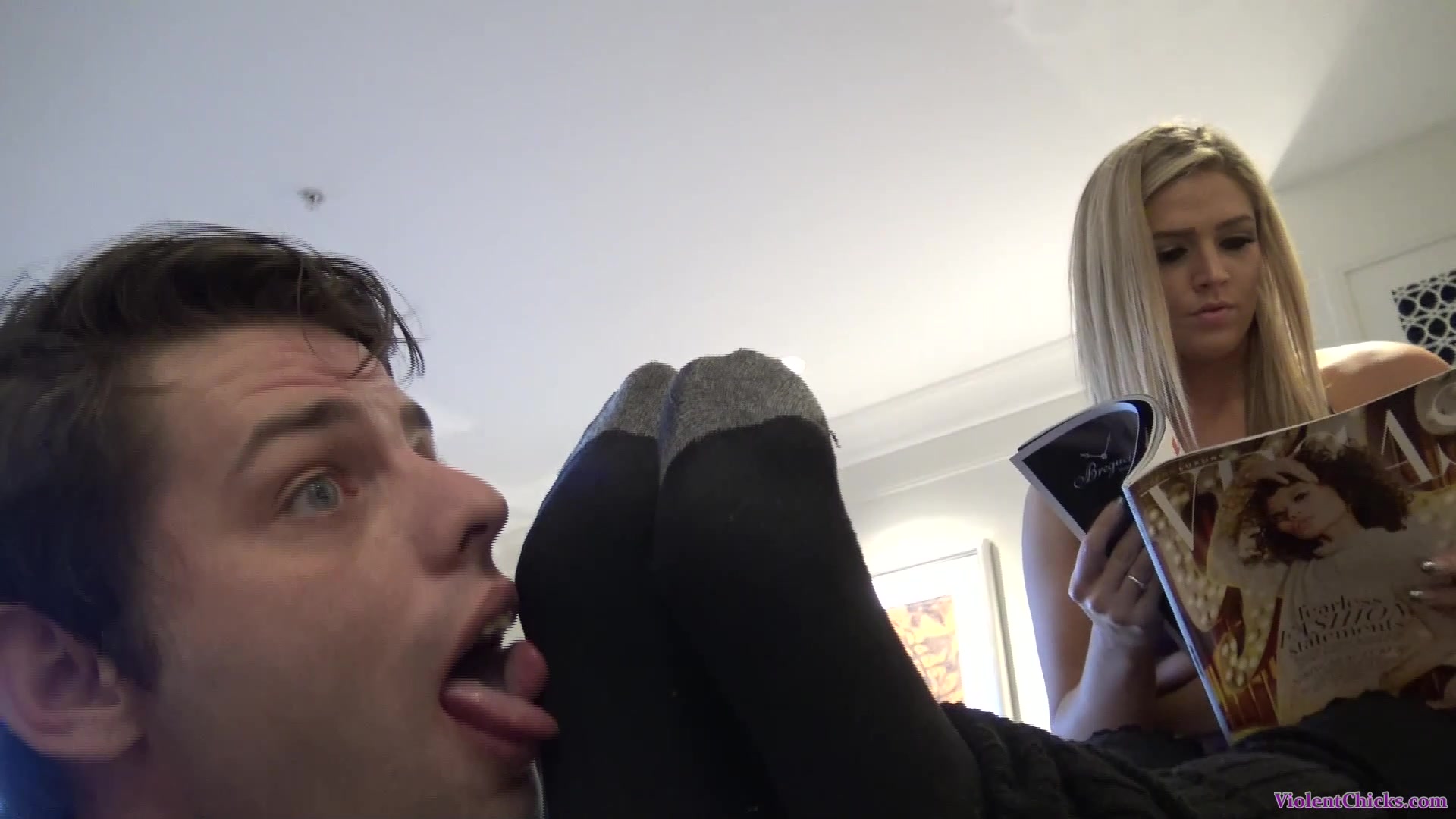 Beautiful Mistress Val ignores a loser licking her socks