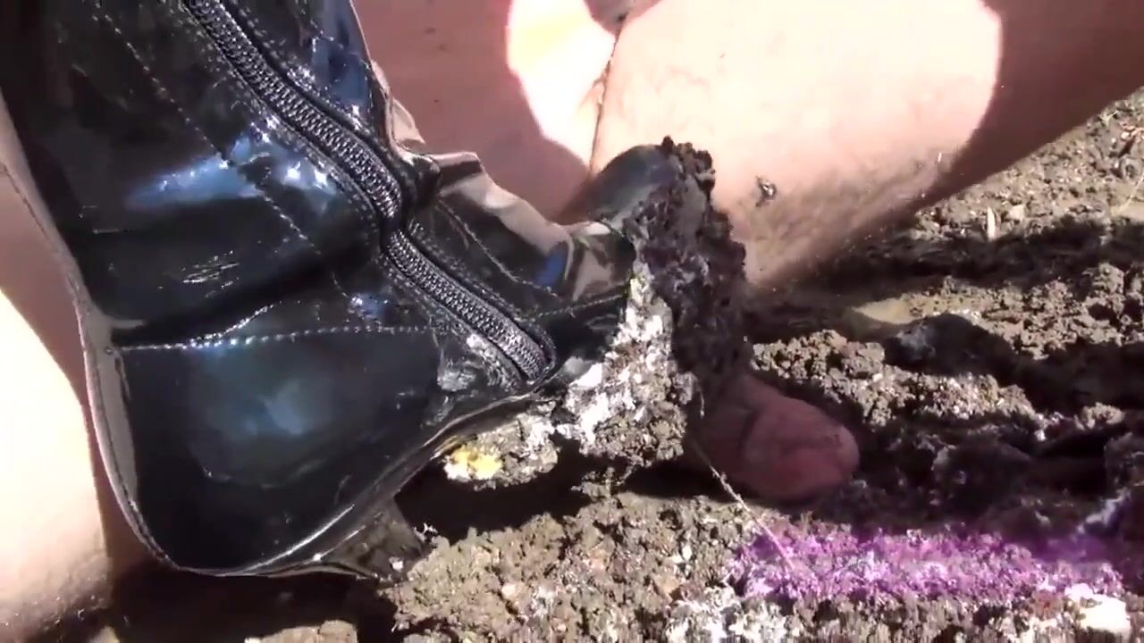 The slave just sat there full of mud and cake as we went on talking. We didnt even notice him there beneath our feet as we talked until we accidentally stepped on his cock LOL! We ended up taking turns grinding and stomping his cock into the mud beneath our boots as we were unaware of his painful situation. ;)