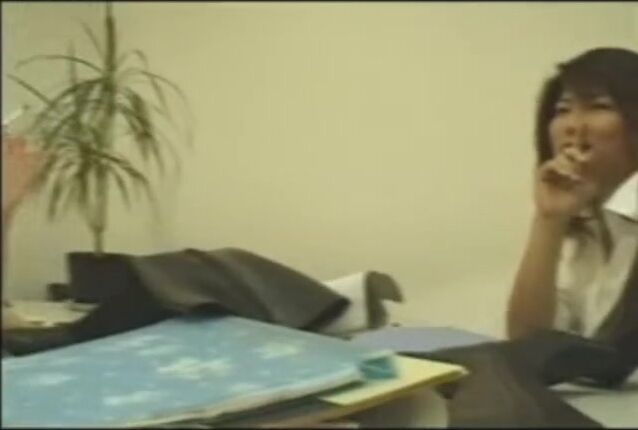 Two asian mistresses smother the face of a foot slave under the table