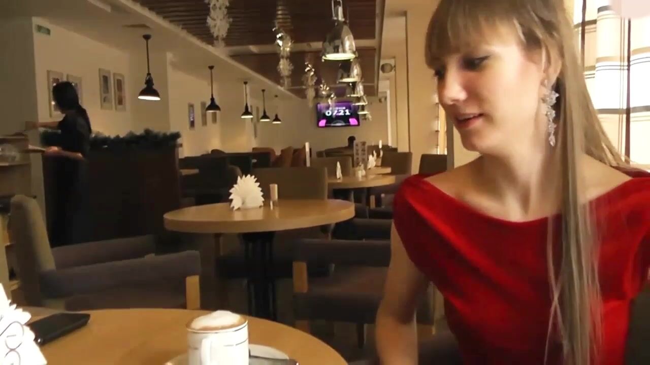 Footjob and Blowjob in Public Cafe.