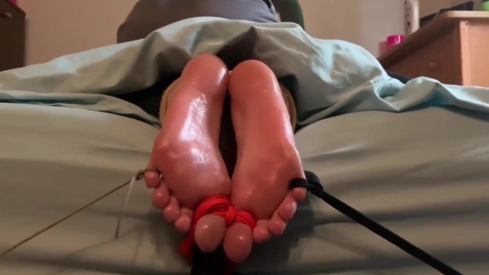 Tickling sexy GF's bare feet tied-up