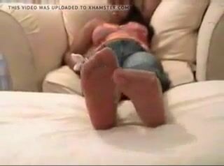 Young ebony beauty shows off her nylon soles