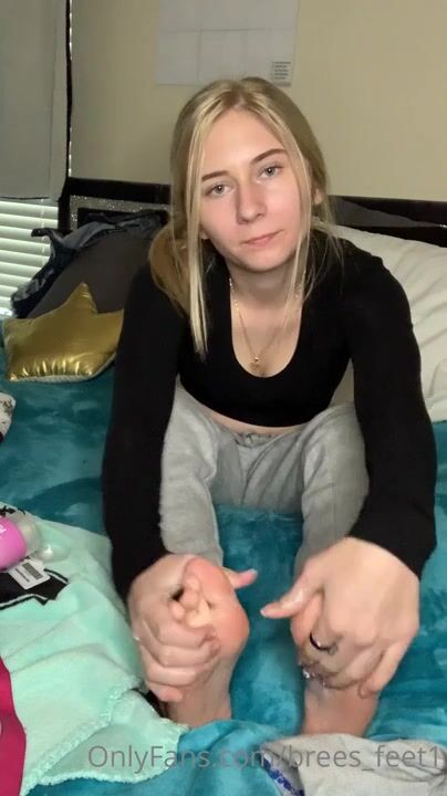 Shy blonde show bare soles feet pov joi