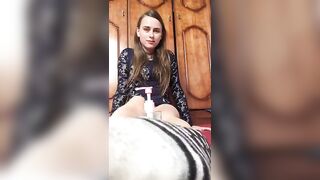 Teen Schoolgirl with Big Tits Handjob on her Black Tights 2