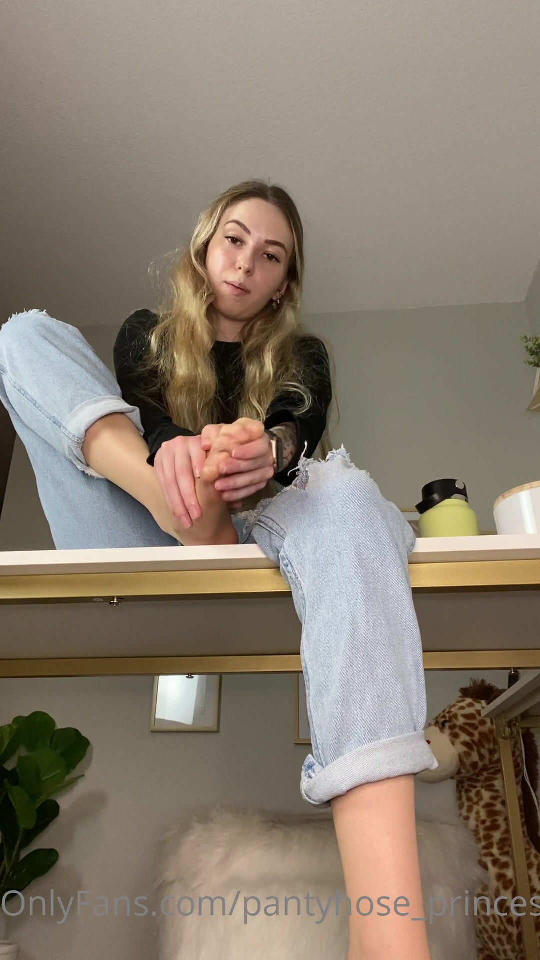 Pantyhose princess shows her sweet soles