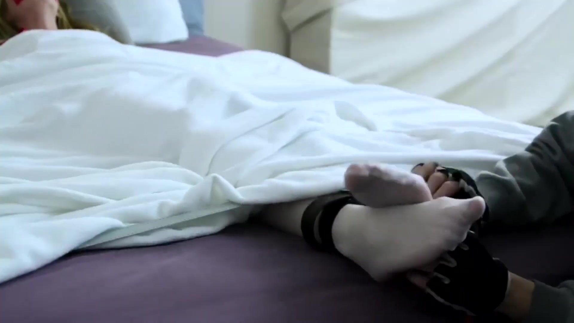Nurse get intense feet tickle stimulation treatment