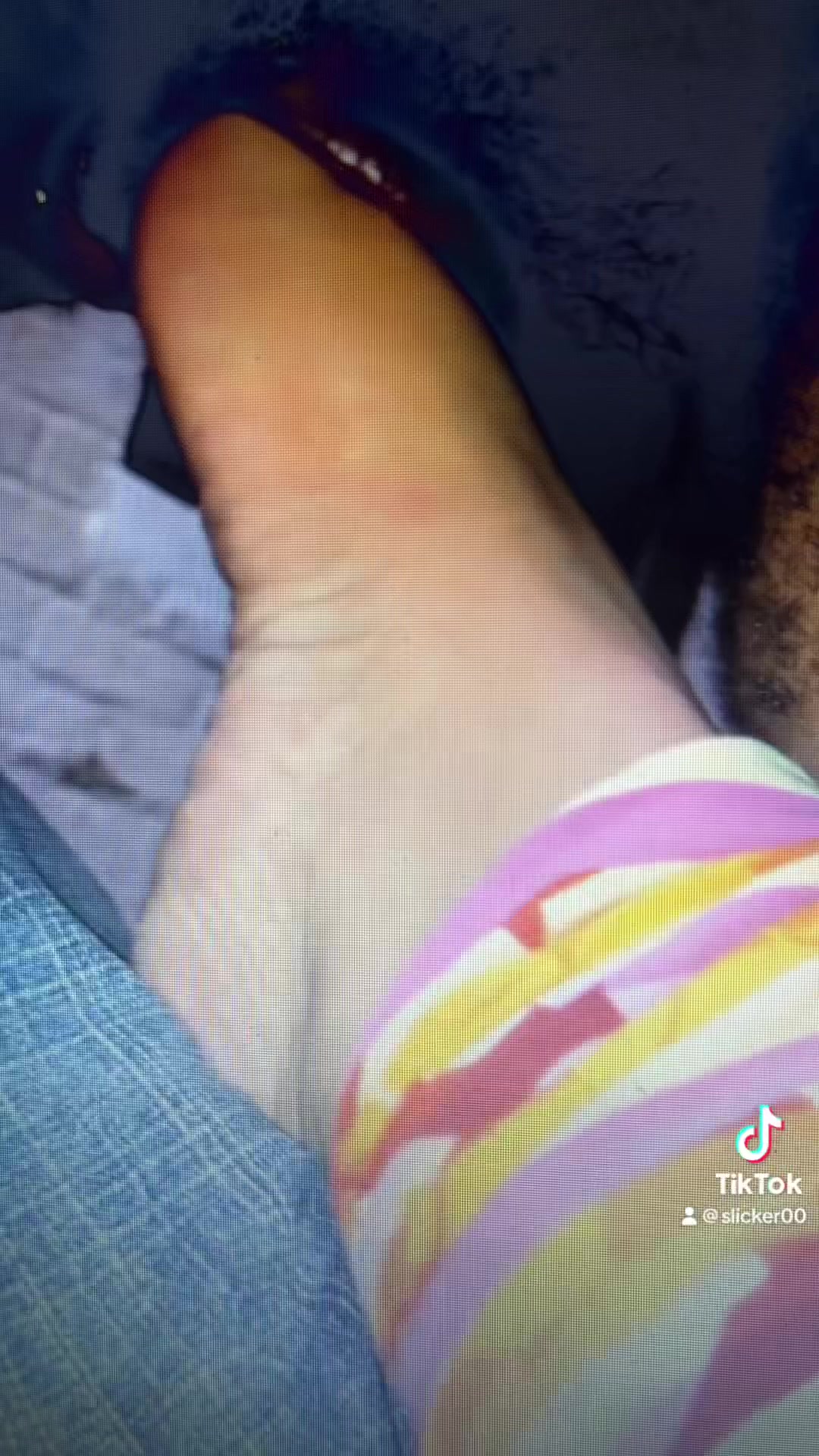 Sucking her toes and biting off her toenail