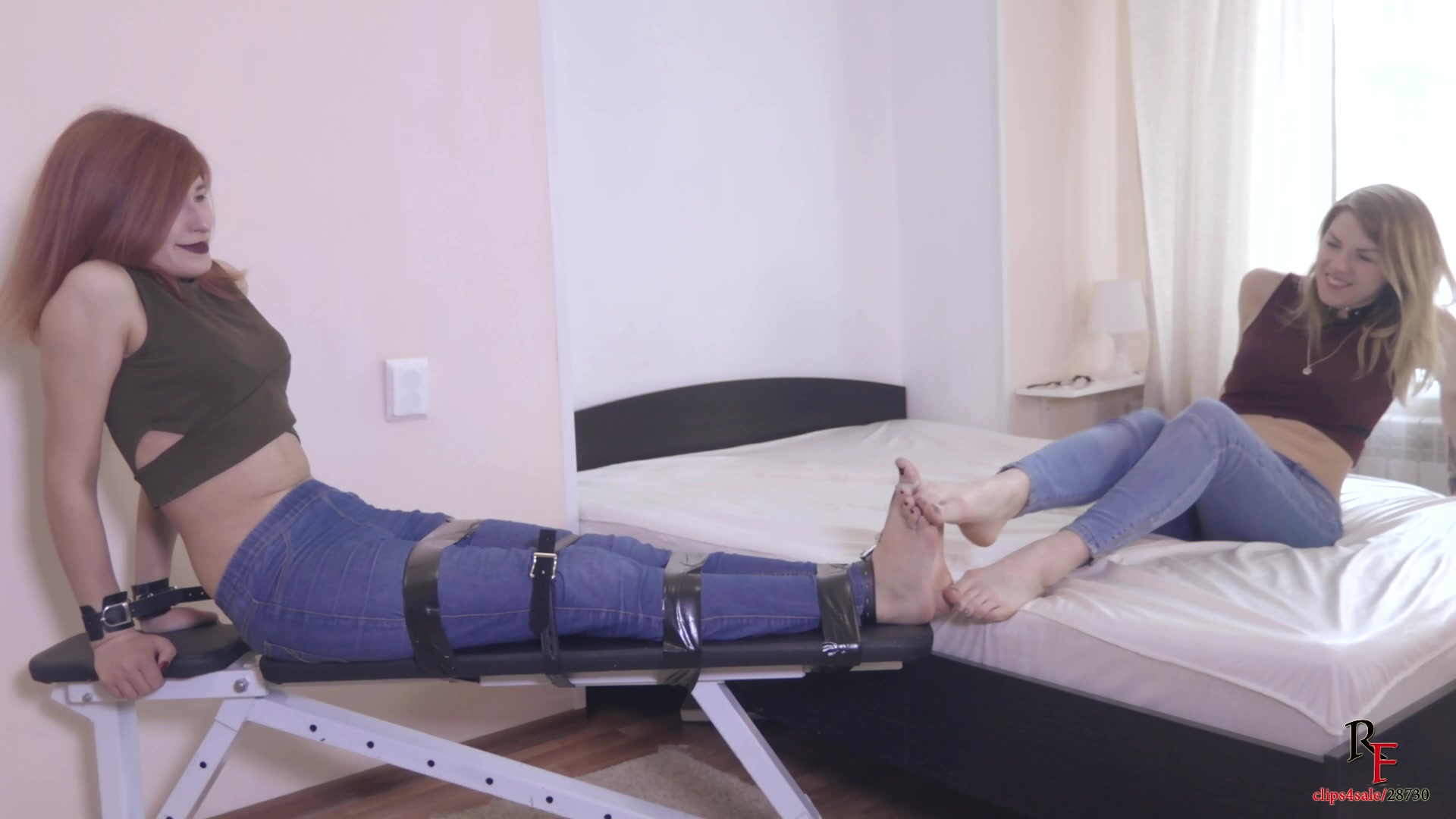 Tickling sexy GF's bare feet tied-up