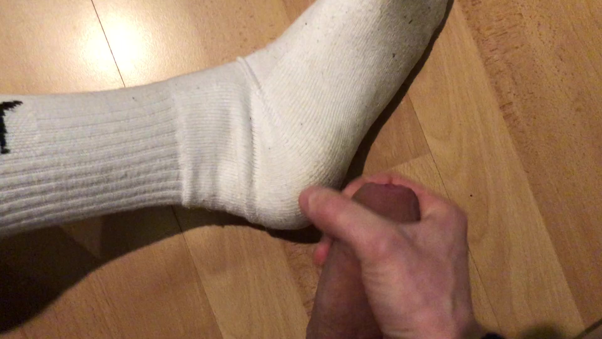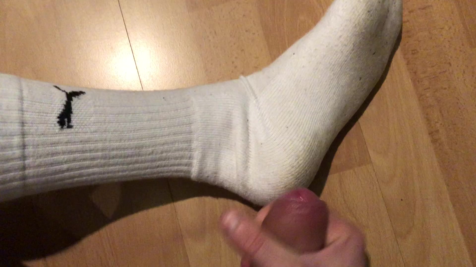 Me cumming on my dirty white Puma crew socks.